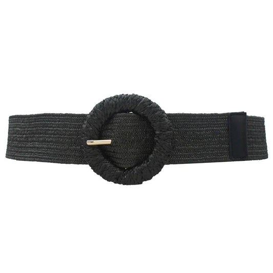 STRAW WRAPPED CIRCLE ELASTIC STRAW BELT : Tan