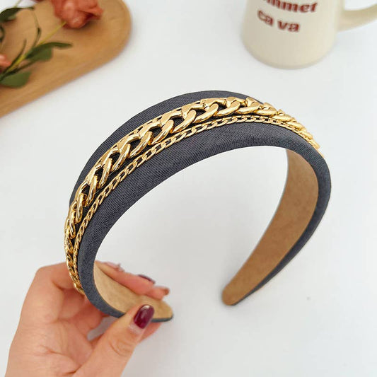 Gold Metal Chain Link Headband: Black/Olive/Gray/Cream