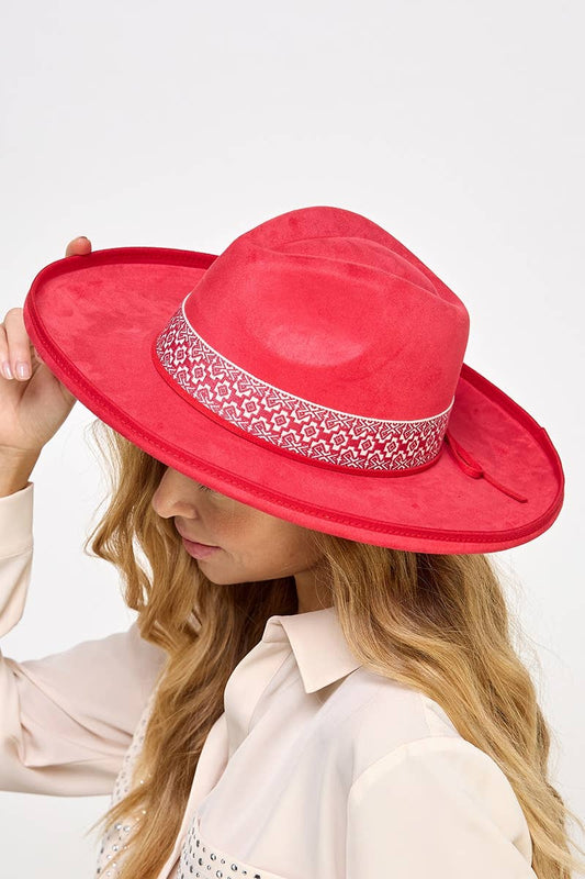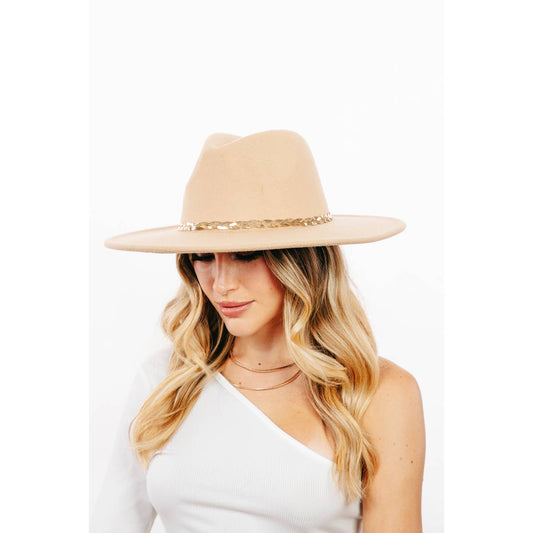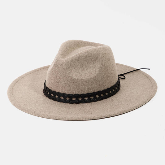 Boho Band Beveled Cowboy Fedora Hat: Ivory