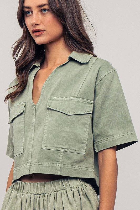 USA FOIL Cropped Mineral Graphic Top: CARDINAL