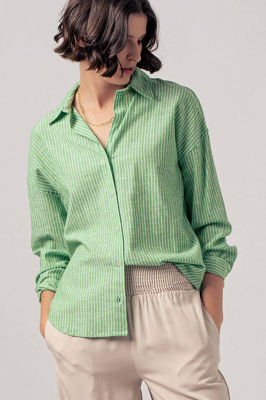 Timeless Pinstripe Button Down Shirt: GREEN
