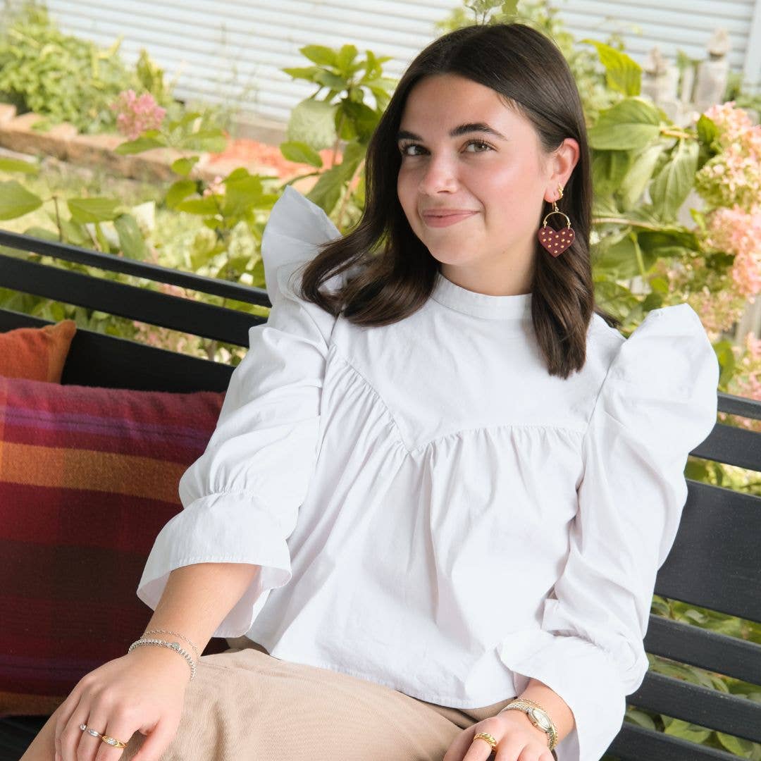 Make a statement with the Studded Harlow earrings. They feature a classic heart shape and are crafted with gold or silver studs applied individually by hand.