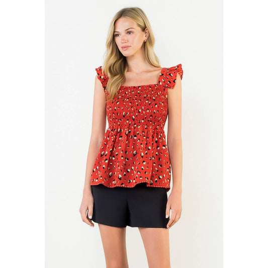 Game Day Red Smocked Ruffle Sleeve Top: RED