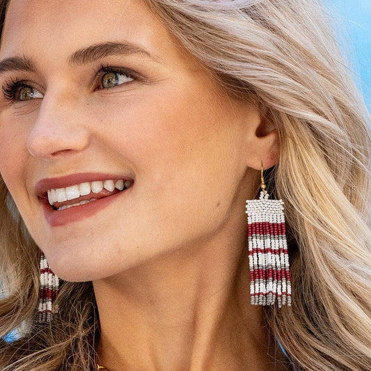 Adaline Game Day Horizontal Stripes Beaded Fringe Earrings