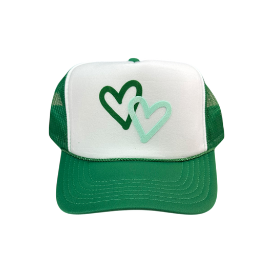 Double Heart Trucker Hat- White/Green