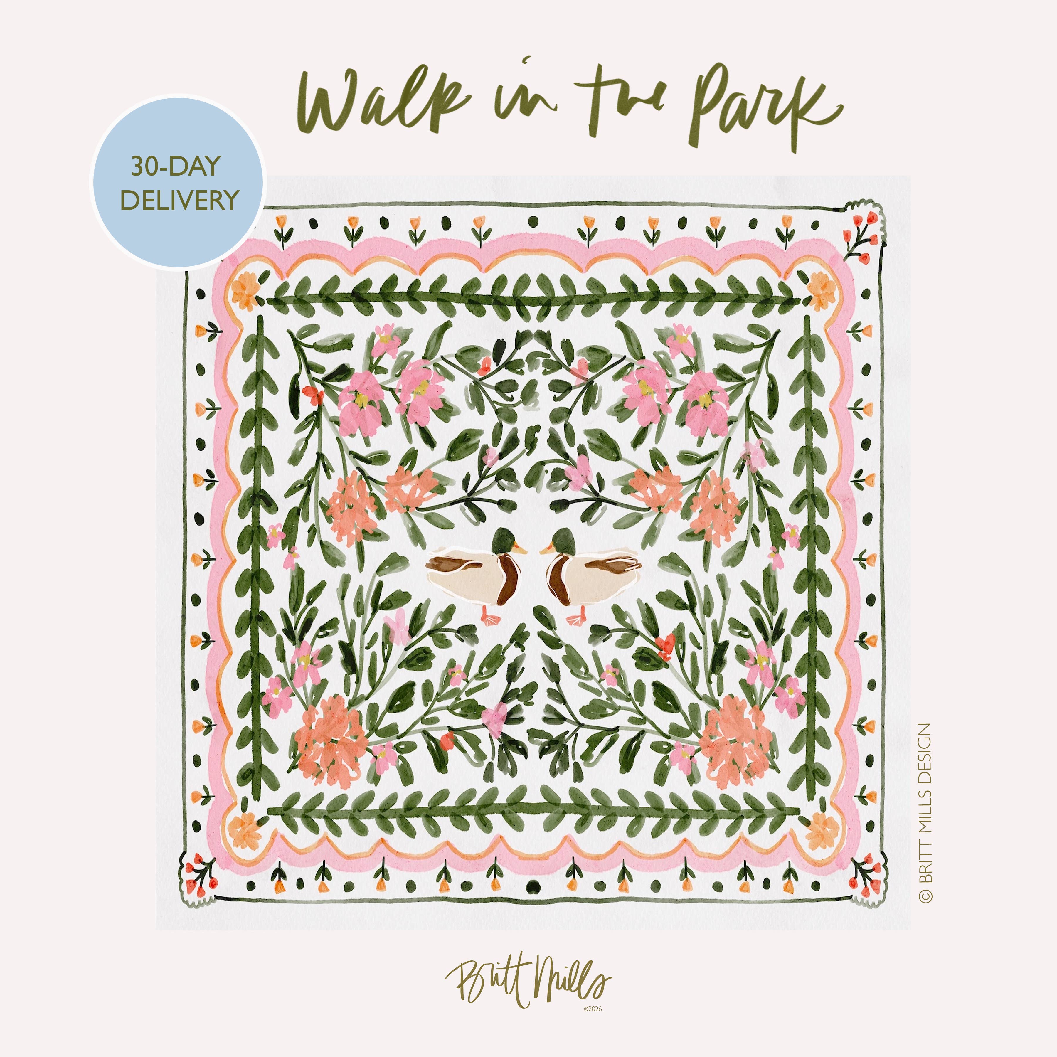 Preorder will ship early March. Make your next Mahjong night extra charming with my standard-size game mat featuring original Britt Mills artwork. Designed with a classic preppy flair, this mat brings style and function to your table—protecting your surfaces while setting the scene for unforgettable rounds. 🎀 Complete the look: Matching Mahjong tote, Mahjong tiles pouch, and tablecloth also available! ℹ️ Product features- Every mat features my original artwork - 100% original! Non Neoprene Artwork is printed on each mat via sublimation digital printing technology. - Vibrant colors - background of mat is a little off-white, not pure white. The design was created using watercolors, and so you will see a mix of light and dark areas throughout.