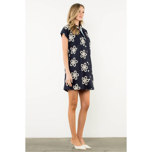 Fallon Embroidered Cap Sleeve Dress: NAVY