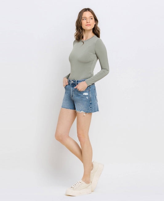HIGH RISE DENIM MOM SHORTS: LA LA LAND