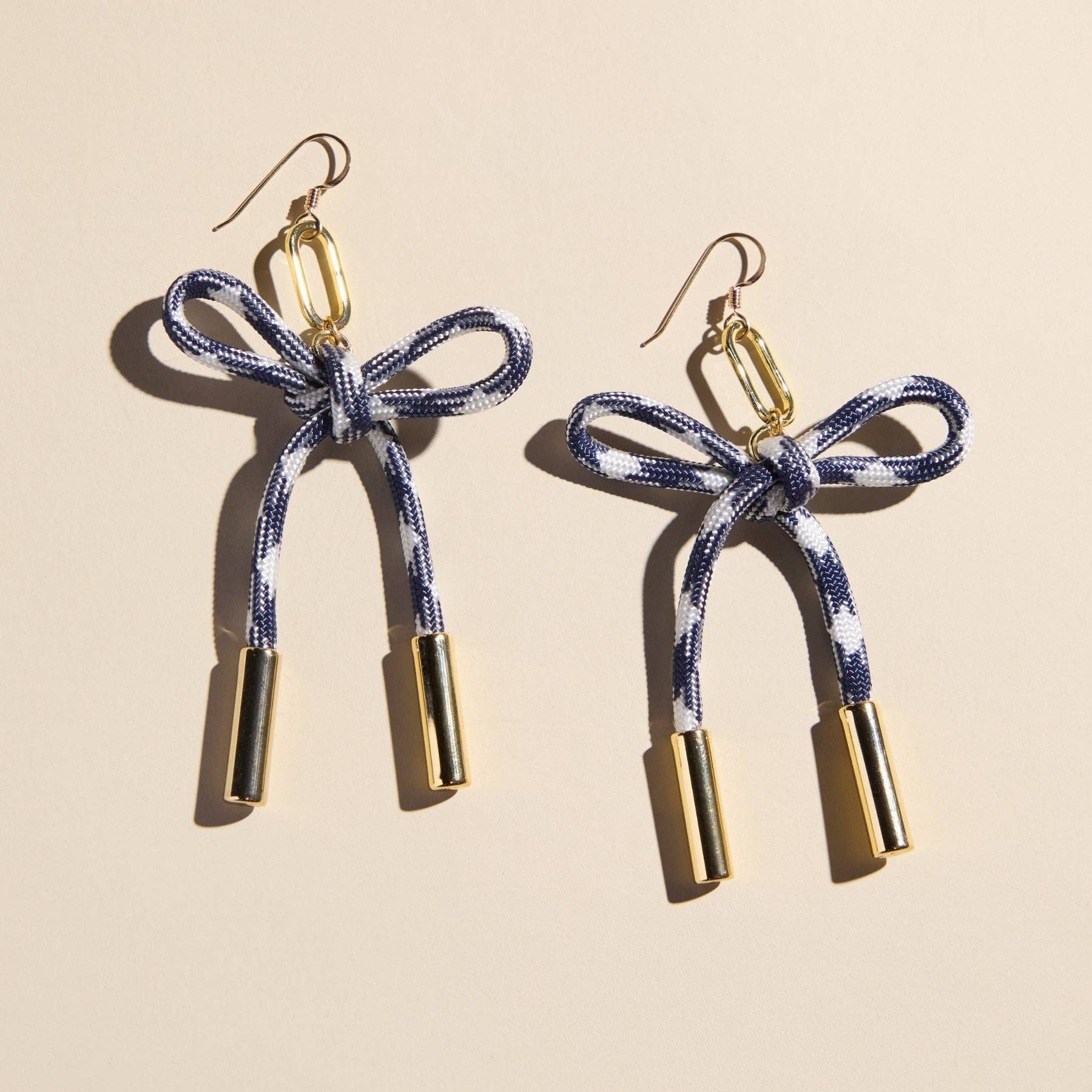 A nautical-inspired take on our best-selling cord earrings — meet the Simone in navy and white. This lightweight statement piece is crafted from durable nylon paracord and finished with your choice of 14k gold-filled or rhodium-plated sterling silver hooks. Crisp, classic, and endlessly wearable, it’s perfect for summer getaways, game days, and everyday style. Looking to match? Check out the Navy & White Cord Bracelet