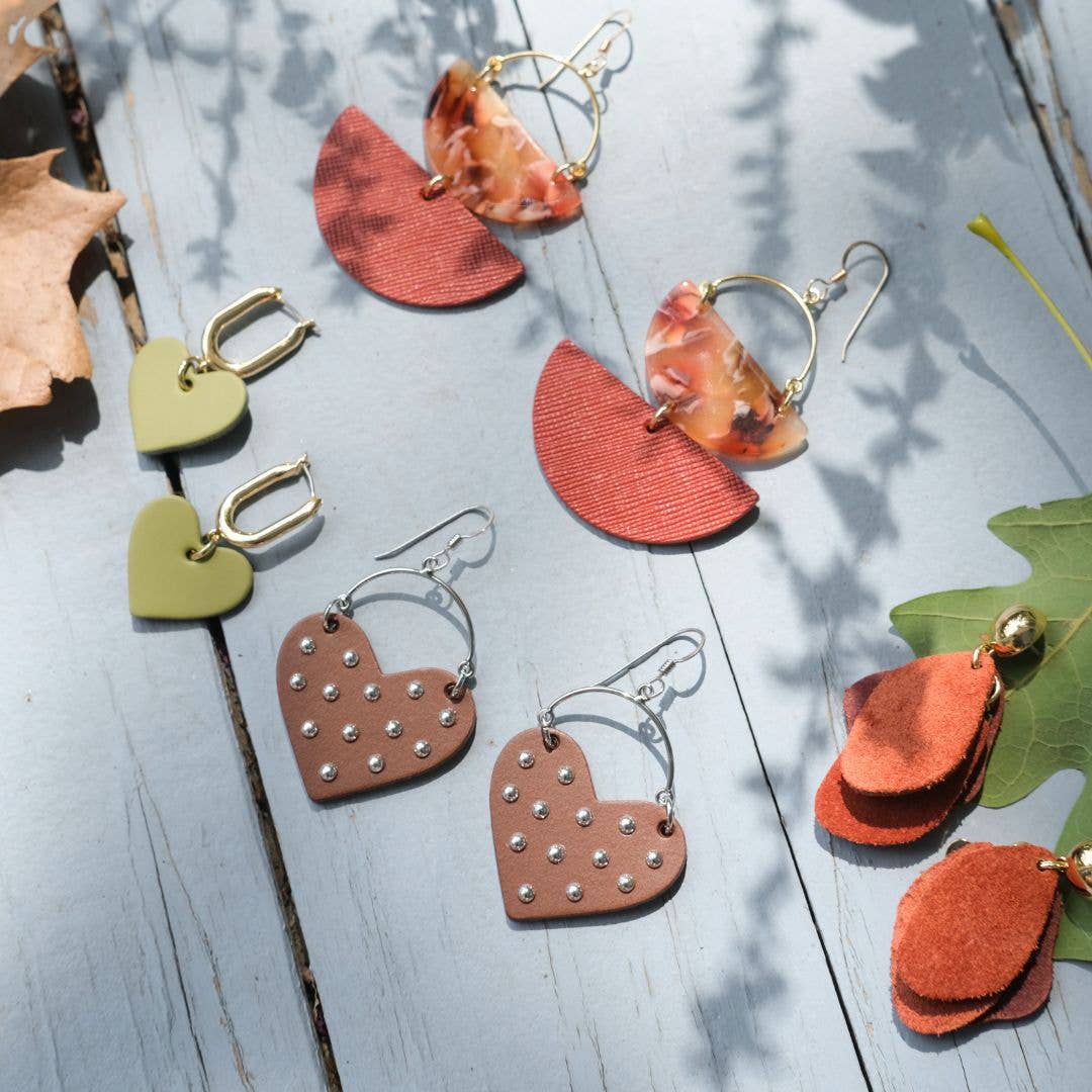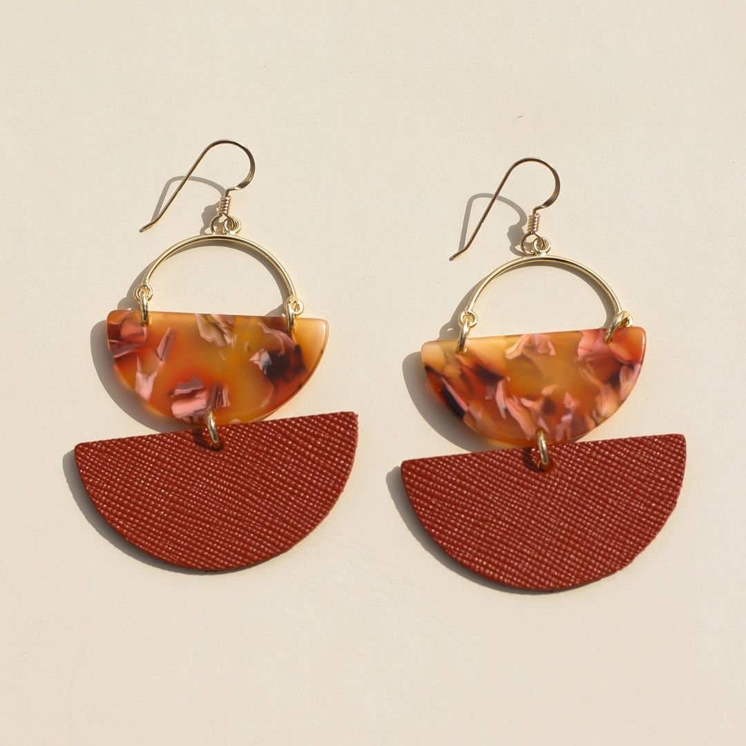 Meet Mira - this fun, bold style combines a lightweight colorful resin with our Terracotta leather. Each resin piece is unique, so colors will vary from piece to piece.