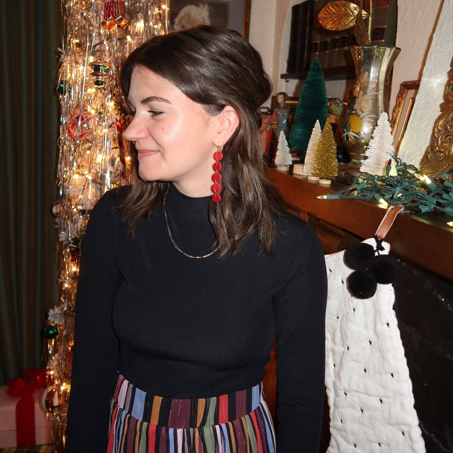 The Crimson Shimmer Sylvie is the life of the party with a shimmering sequin-inspired silhouette. The subtle sparkle of the tiered leather shines in the light and adds the perfect touch to any festive ensemble.