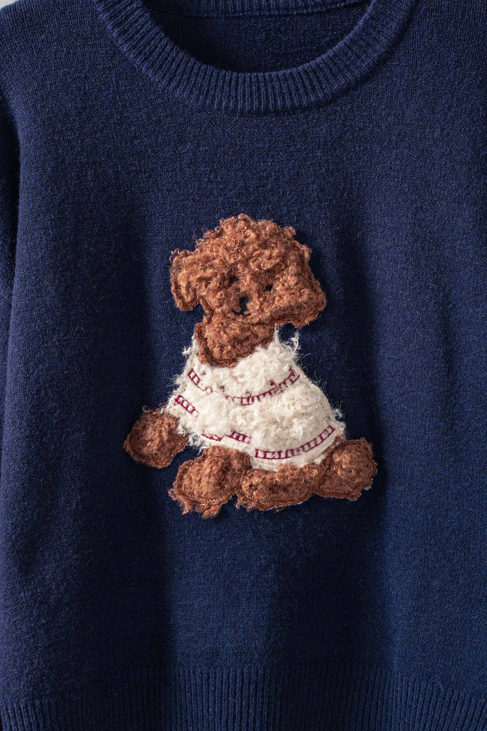 Whimsical Puppy Applique Knit Sweater: NAVY / S/M-3:M/L-3